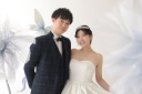 お二人の柔らかい雰囲気とミモザの背景がぴったりですね^^