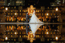 窓の模様とお二人のシルエットが素敵なお写真。本物のお城にいるみたいですね!