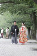 公園内にキレイなお花が咲いていたので一緒に撮影しました。白無垢との相性も◎です。