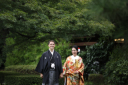 広いお庭の中、お嫁様の手を引いてエスコートする旦那様がたまらなく素敵です。