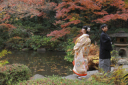 ちょうどよく色づき始めた紅葉と色打掛と背景がばっちり合っていますねとっても仲良しなおふたりとの撮影はとってもたのしかったです