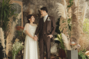 新婦様の襟元のコーディネートと髪飾りと背景の梅の淡いピンクがやさいしい感じでおふたりにぴったりでした!