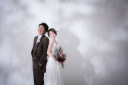 当店人気の東京駅撮影。最初はご新郎様にブーケを持ってもらい、ストーリー性を。