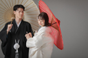 ご新郎様とご新婦様、それぞれが対照的な色のお着物だからこそ、コントラストがしっかり出て写真映えがしやすくなる素敵な組み合わせです♪背景との相性も相性も◎!