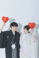 お二人の身長差を活かしたくてバックハグをしていただきました。嬉しそうな表情がとってもいい。