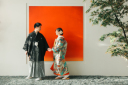 シンプルな背景はお二人の表情や、お衣装の柄などを引きたててくれます!