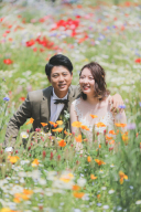 緑をバックにおふたりの真後ろを、身長差がばっちりです