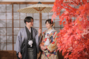 まずは縁側で立ち姿から撮影しました。最初から笑顔が素敵なお二人です!