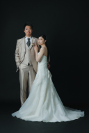 ブーケでお顔を隠すのは、白背景で撮るとちょっぴりおしゃれな感じになります。