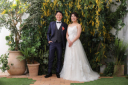 華やかなフラワーウォールの背景にも負けないとっても絵になるお二人でした。