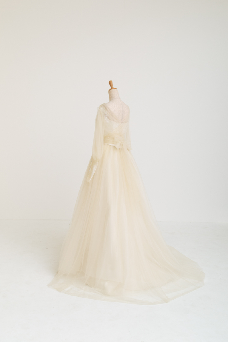 オリジナルブランド【ヒカリトユレル】のウェディングドレス沖縄の光にキラキラ光り 風にひらひら揺れる沖縄での撮影の為に作られた上質なウェディングドレスですサイズ調整可能でセパレートタイプなので妊婦様への負担も少なく心地が良いのが特徴です