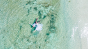 透明感溢れる沖縄の海を背景に、見つめ合い微笑むお二人。沖縄の海は、場所場所で違った表情を見せてくれます。当日、海の状態を見ながら素敵な海へご案内します♪