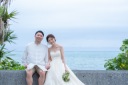 ビーチから見れば沖縄の海の美しさはもちろん分かりますが、4Kドローンを使用して空からお写真を撮るとさらに美しい景色。沖縄フォトウェディングならではの1枚ですね!