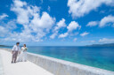 砂浜に腰掛け寄り添い合うお二人。新婦様の背中にそっと手を添える新郎様の優しさが伝わってきます。お揃いのオリオンTシャツも素敵ですね!お持ち込みアイテムOKです♪
