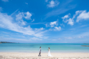 シルエット姿のおふたり。沖縄の美しい青い海と白い砂浜が協調され、まるで絵画の様ですね。リクエストカットも承っておりますのでお気軽にお声がけくださいませ♪