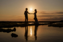 心地いい波の音と共に、黄金色に輝く海で手をとり合い、散歩されるお二人。ゆっくりとした時間が流れます。日が沈むまでの1時間を大切に過ごしながら撮影を進めます。