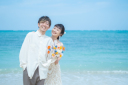 沖縄本島ももちろんキレイですが、離島になると格別!実はこの日は曇り予報。この時間は雲に覆われていましたが、この青い海がおふたりを待っててくれました♪