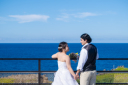 ゆっくり歩みを進めるおふたり。広がる美しい沖縄の海を眺めながらのんびり撮影を楽しめるのは、ouchiならではの魅力♪心地よい時間を一緒に過ごしていきましょう