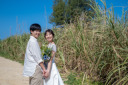 前日に沖縄でご結婚式を挙げられたおふたり。雨予報だったお天気も、撮影の頃にはすっかり晴れに♪まるでお天気までがおふたりを祝福してくれているようでした。