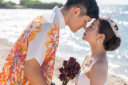 と〜っても可愛らしい新婦様!オンまゆがとても似合っていました♪ヘアスタイルはよくリクエストいただく編みおろしスタイル♪髪の長さもとても長く編み応えがありました!ヘアメイク中から楽しく会話させていただき、このままおしゃべりしていたかった。笑)また沖縄へいらした際はouchiへ遊びにいらしてください♪