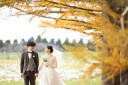 少し冷たい海風が心地よく感じる季節。おふたりの自然な笑顔が印象的なショットになりました。ブラックで落ち着いたドレスと秋の海の雰囲気がマッチした1枚です。
