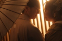 おふたり寄り添って、おでこをコツン♪キラキラでシルエットになるように!