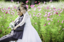 ブーケ風の背景はナチュラル派のお2人にも大人気!シンプルだからこそ2人の表情や仕草が映えますよね♡