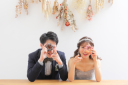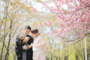お花畑やたくさんの木々の中で撮るウェディングフォトはナチュラルでとーっても爽やか!お2人の仕草も可愛い1枚です♪