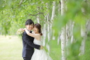 幻想的な光の空間でおでことおでこを近づけるポージングで!お2人のシルエットが美しいですね♪