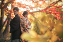 紅葉に囲まれた橋の上で寄り添うお2人!空気感が素敵です!