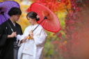 こちらは和装と相性がいい扇子を使ったお写真。お2人の表情とっても素敵です❁