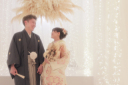 ドライフラワーとカラードレスの組み合わせがとっても可愛すぎます☆仲良く腕を組んで素敵な笑顔を見せてくれました◎
