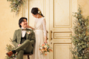 明るさと色味を落ち着いた雰囲気にし、セットの奥行きを使っておふたりに目線が集まるお写真です!