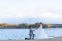 富士山麓の高原で。映画のワンシーンのような乗馬でのウェディングフォトを。
