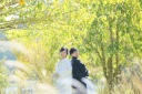 神社には一年綺麗な緑の木々もあり、新録の中の様な撮影も可能です。透き通った爽やかな雰囲気がとてもお二人にあっております