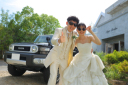 今回は洋装2着、和装1着の撮影でまずはチャペルのロケーション撮影から始まりました。新婦様のロングトレーンを活かしたバックショットです。