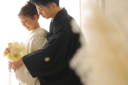 新婦様メインのショット。新郎様に包み込まれて寄り添う姿を撮影させていただきました。