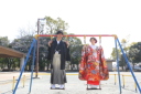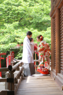3着目は和装で。色打掛にカツラは、花笄がオススメです。衣裳やお二人の雰囲気に合わせて、素敵にお写真が残せますよう努めさせていただきます!