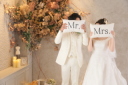 バックショットも人気の一枚です。 開放的なガーデンでおふたりも素敵な笑顔!