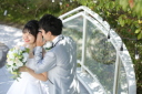 お嫁様のお中には小さな命が。お腹を見つめるお二人はパパとママの顔。