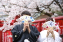 道を挟み桜の木が並ぶ幸公園では、一面に春を感じるお写真がお撮りできます。