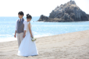 神社らしい造形物を入れながら。穏やかな雰囲気がとても微笑ましいおふたり。