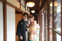 色打掛で神社ロケーション。真っ赤な鳥居は迫力満点ですが、お着物の柄が負けてません。