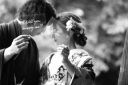 モノクロ加工とポージングでアーティスト写真のようなお写真。お二人のなりきり具合も素晴らしかったです