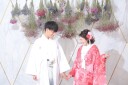 緑と赤、黒と白、お互いを引き立てあう色味。お嫁様は綿帽子でも撮影させていただきました。