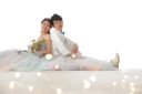 3着目の和装撮影はお二人とも白色でした。どの背景にもよく合い色つきの小物や髪飾りも目立ちますね。