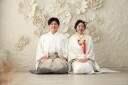 衣裳、美容、小物などトータルのコーディネートを大切に、おふたりのポージングもカチッとし過ぎずくだけ過ぎずのバランスで撮影させていただきました。