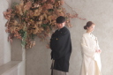 足を踏み入れると誰もが感動する、流行りのドライフラワーで囲まれたブラウンを基調としたモダンアンティークなチャペルです。非日常を感じる空間でのフォトウエディング。