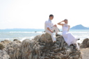 季節や天候によって色が変わるのも海の良さ♪空と海の綺麗なブルーのコントラストの中のおふたりは輝きを増します☀