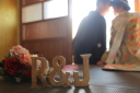 お二人に差し込む光と軒下ならではの、和の雰囲気が落ち着いた大人っぽい写真に仕上げてくれる一枚。